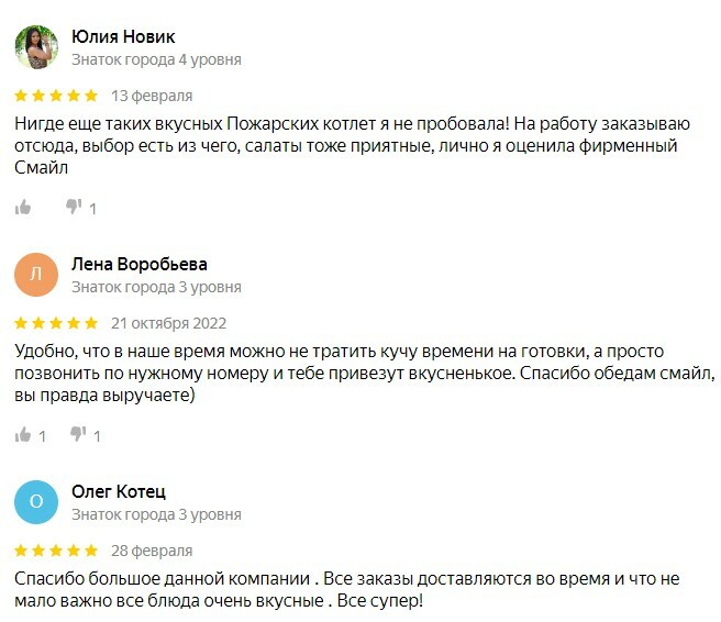 Откройте для себя, почему “Обеды Смайл” стали выбором тысяч людей. Наши клиенты делятся историями: от “вкусно” до “вовремя”. Они рассказывают о нас лучше, чем мы сами могли бы. Здесь собобраны не просто отзывы, а настоящие рекомендации, которые помогут сделать осознанный выбор.